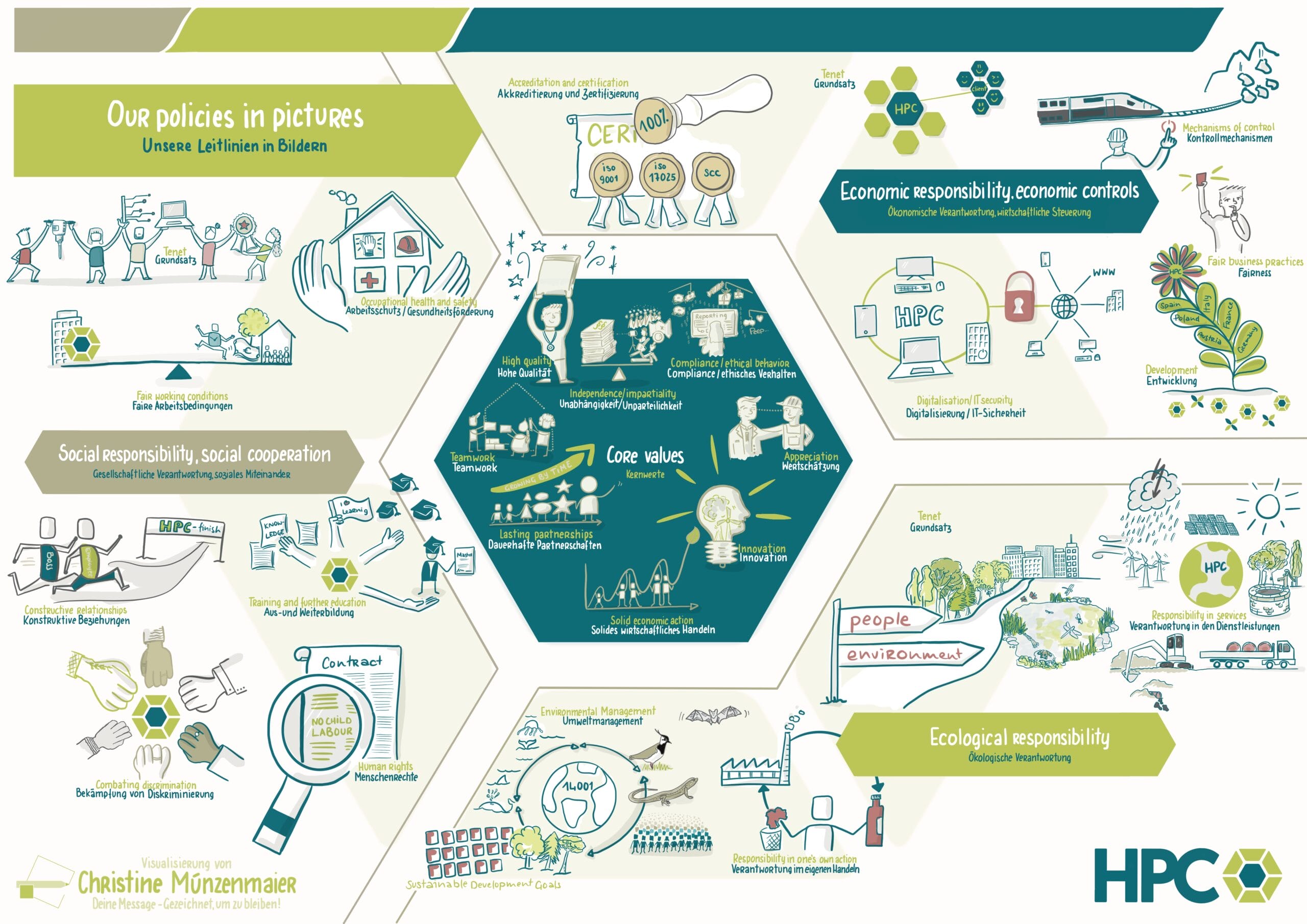 Diese Leitlinien wurden vom Vorstand und von den Niederlassungsleitungen der HPC AG sowie von den Geschäftsführungen der Tochterunternehmen in der HPC-Gruppe entwickelt. Sie werden allen Mitarbeitenden vermittelt und von Führungskräften und Mitarbeitenden beachtet.